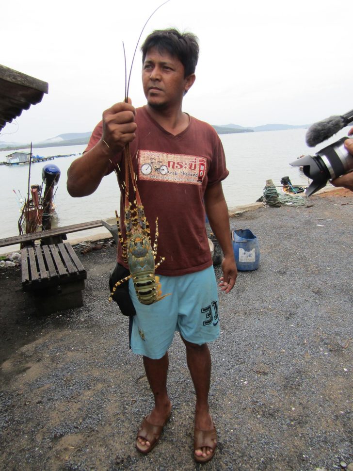 คุณสมชายเป็นคนภูเก็ต เกิดที่นี่โตที่นี่ ทำมาหากินอยู่ที่นี่ ส่วนจะตายที่ไหนยังไม่รู้ อาชีพหลักคือ การทำประมง มีเรือเล็กๆ จับปลาและงมกุ้งแบบเช้าไปเย็นกลับ งมได้เป็นกุ้งมังกรตัวเล็กบ้างใหญ่บ้าง แต่ส่วนใหญ่จะได้ตัวเล็กๆ หนักเพียง 1-2 ขีด พองมกุ้งมังกรได้ก็จะขาย ได้เงินเท่าไรก็เอา